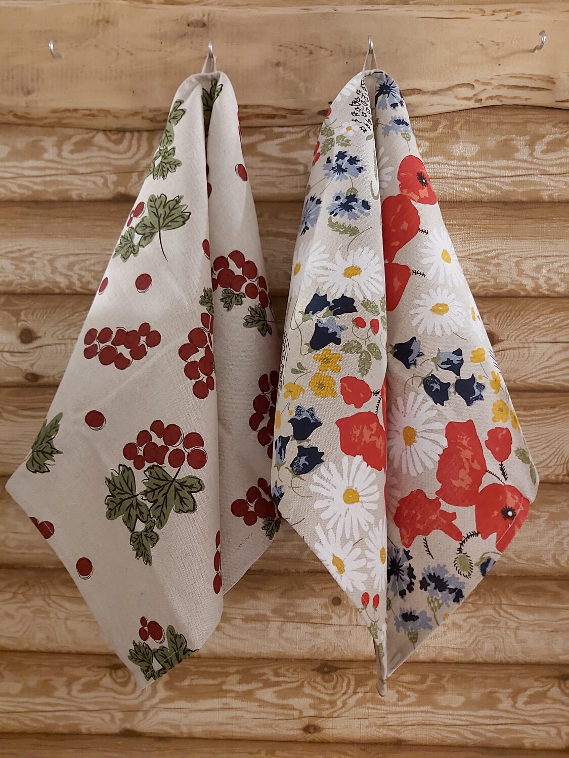 Komplekts: 2 gab lina dvielis 45x80cm (jāņogas un magones)