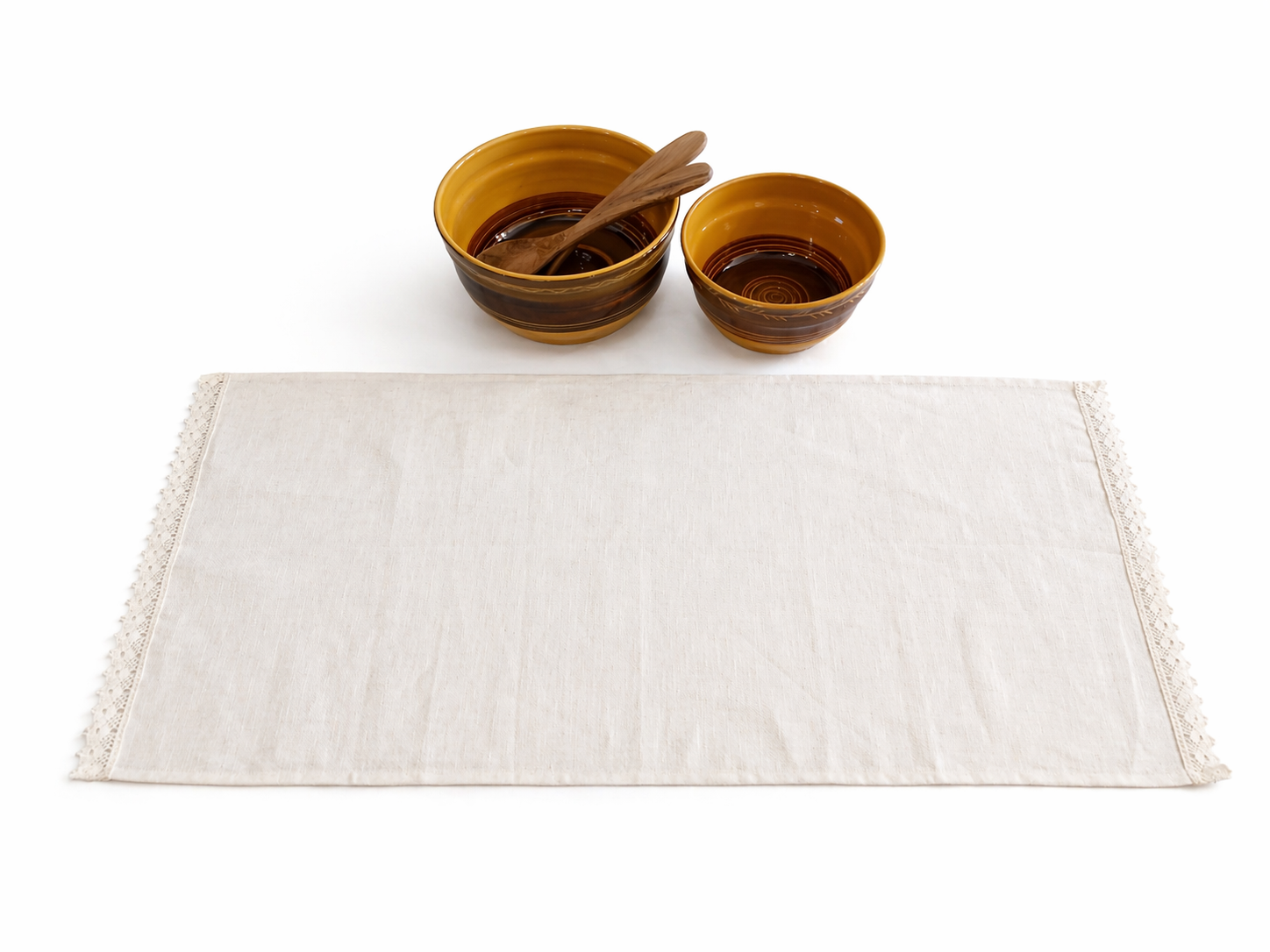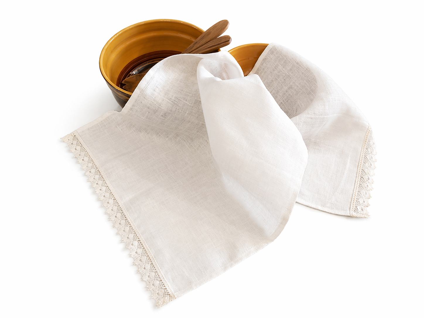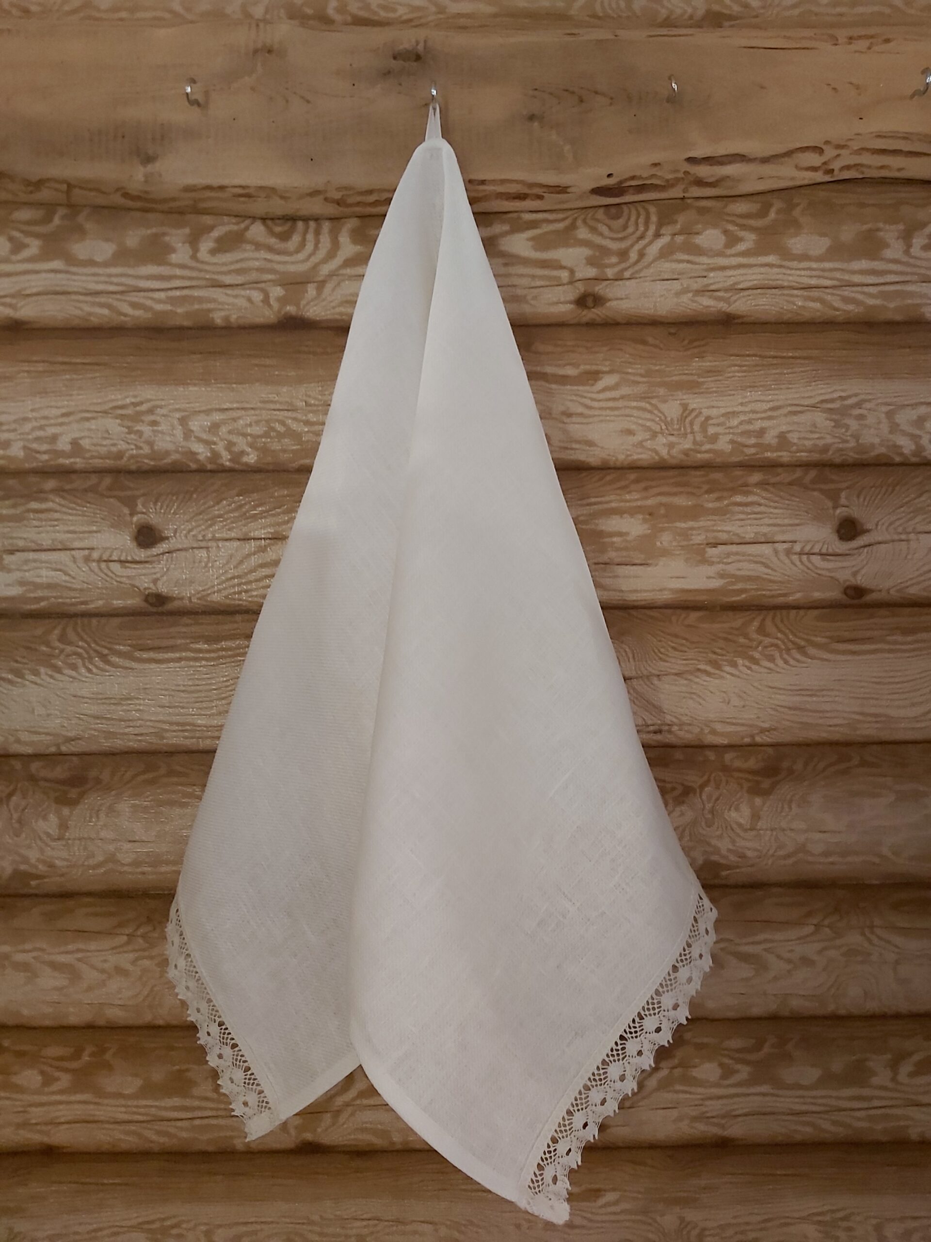 Lina dvielis 45x100cm (balta) ar mežģīni