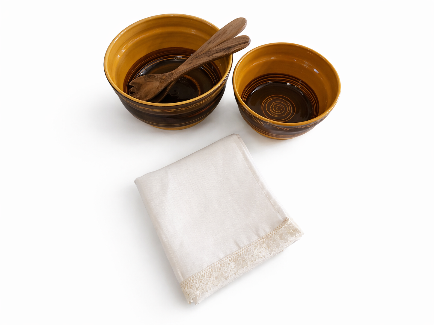 1 dvielis ar mežģīnēm abās malās un ar cilpiņu, izmērs 45x 100cm
