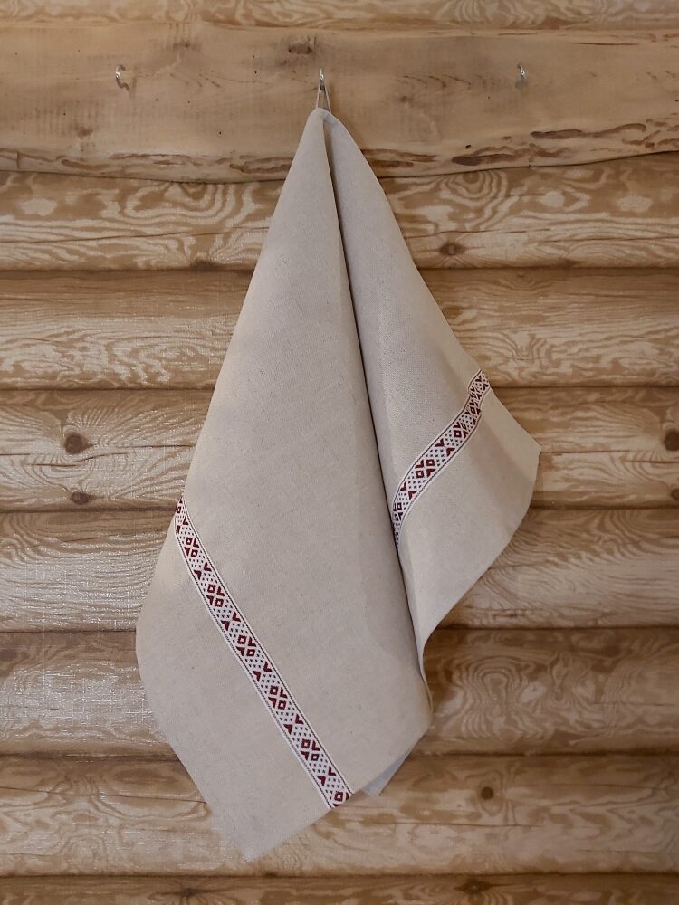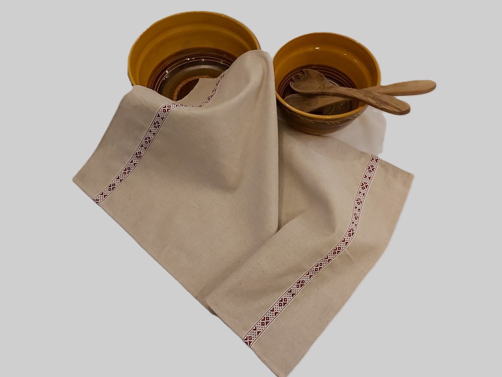 Lina dvielis 45x70cm ar bordobaltu 1.5 cm platu tautisku lentu abās sānu malās
