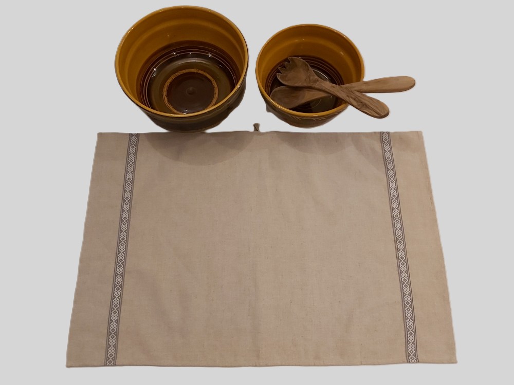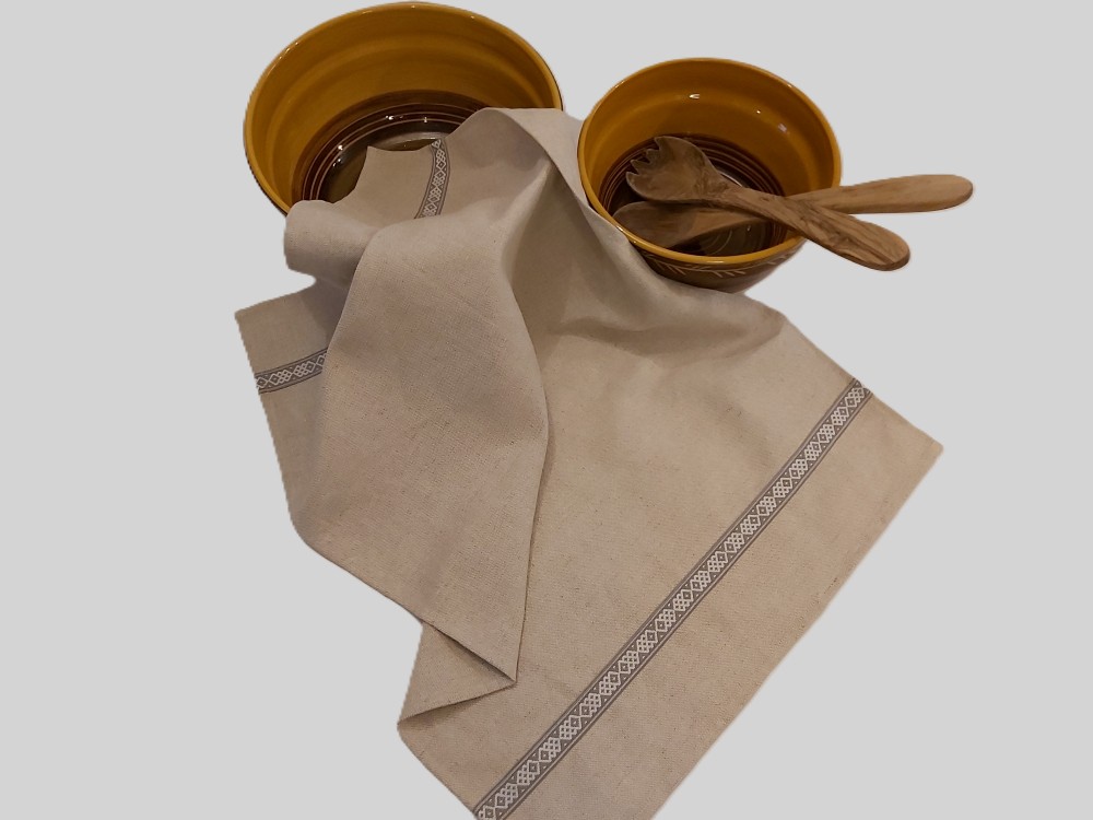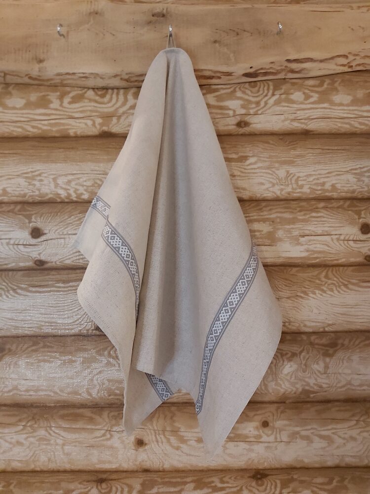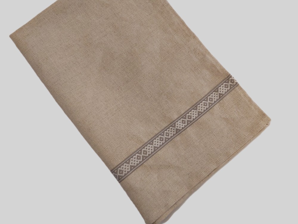 Lina dvielis 45x70cm ar pelēkbaltu 1.5 cm platu tautisku lentu abās sānu malās
