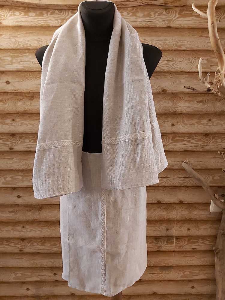 Lina dvielis 80x145cm ar tautisku lentu (pelēkbalta) abās dvieļa malās.