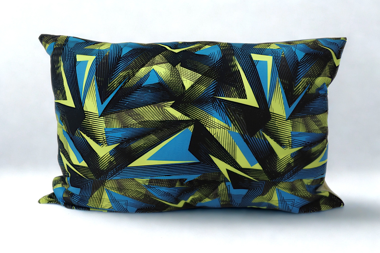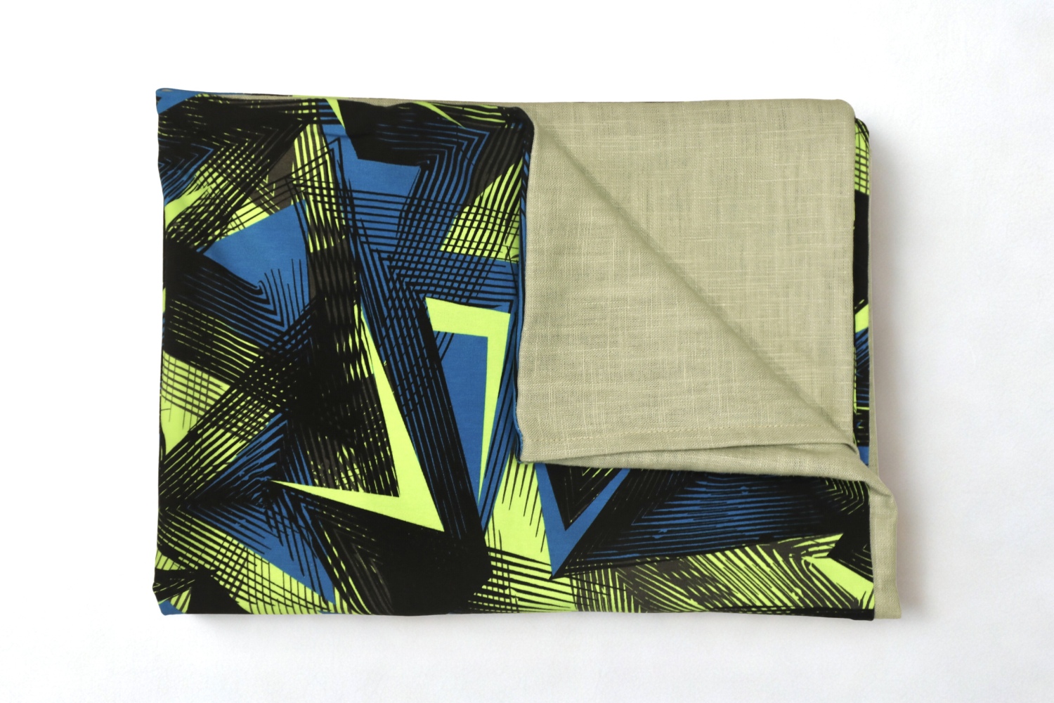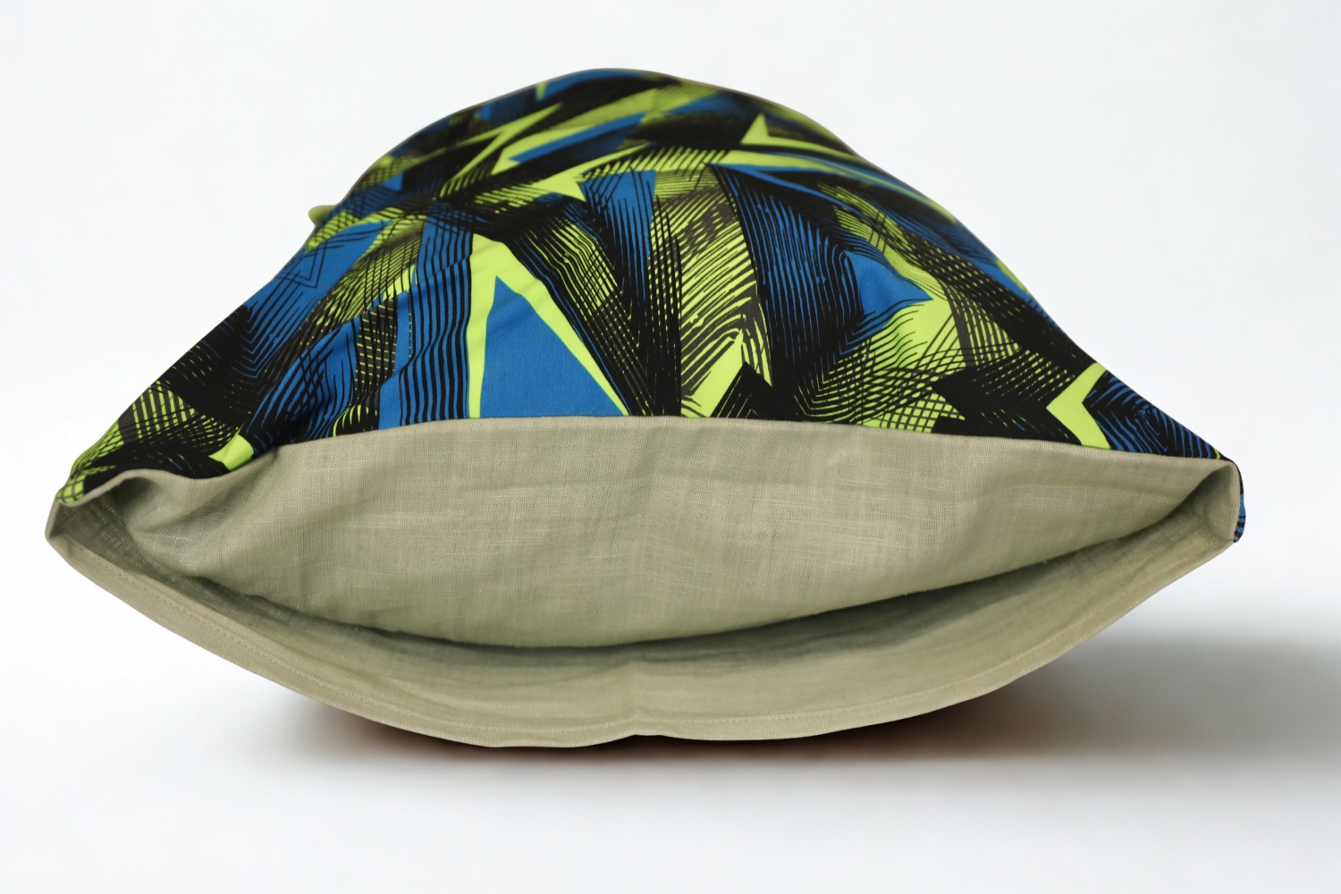 Dizains: 1 gab mazgātā lina spilvendrāna 50x70cm ar 20cm ieloku. Spilvendrānai viena puse trikotāža ar dizainu-ģeometrija un otra puse lina auduma krāsa-gaiši zaļš.